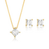 Add a touch of elegance to any outfit with our gorgeous necklace and stud earring set. Crafted with stunning white and square stones, both pieces are made with 18k gold fill for a luxurious look and feel. Elevate your style and make a statement with this beautiful set!