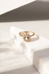 A ring that radiates light and elegance. Handcrafted in 18k gold filled, this exquisite piece features an oval beryl crystal at the center, surrounded by a shimmering halo of white zirconias. The delicate yet bold design evokes the grace of vintage heirlooms with a modern twist.